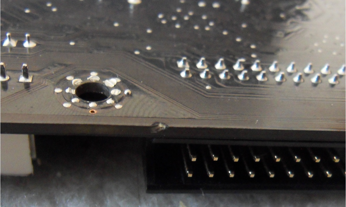 spätestens beim dem "Kratzer", der eher eine Schmelzung kannste das Board wegschmeißen, da ist fast schon garanatiert die äußerste Leiterbahn beschädigt oder schon ganz durch.