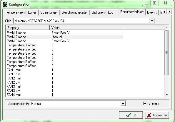 Also laut der HWMonitor Anzeige läuft der Lüfter auf 910 RPM. Dabei ist er deutlich hörbar. Auf dem ASRock war er das wie gesagt nicht. Irgend eine Chance das noch runterzuregeln? Der Brocken Lüfter hat 4 Pins by the way.
