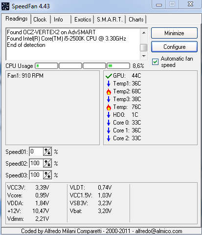 Ich habe obiges Board und einen Alpfenföhn Brocken, dazwischen klemmt eine 2500K CPU, die ich auf 1,130VCore betreibe. Mein Problem: Obwohl ich das Board im BIOS angewiesen habe den Lüfter mal auf 0% zu setzen (Laufgeschwindigkeit) dreht dieser deutlich hörbar. Temperatur ist um die 38°C. Ich will diesen doofen Lüfter aber auf Minimum laufen haben, vorher war ein ASRock 890GM drin, da lief er auch lautlos. Warum geht es hier nicht? Was habe ich an den Einstellungen verbockt? Die MSI Control Center Software ist übrigens relativ trashy und zu gar nichts zu gebrauchen.