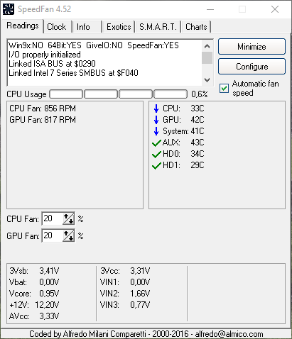 Ich bin gerade dabei meinen aufgerüsteten PC in Speedfan zu konfigurieren, weil ich auf leise Idle-Systeme abfahre. Ich komme bei einer Umgebungstemperatur von ca. 25° C auf nur 40° C GPU Temperatur: