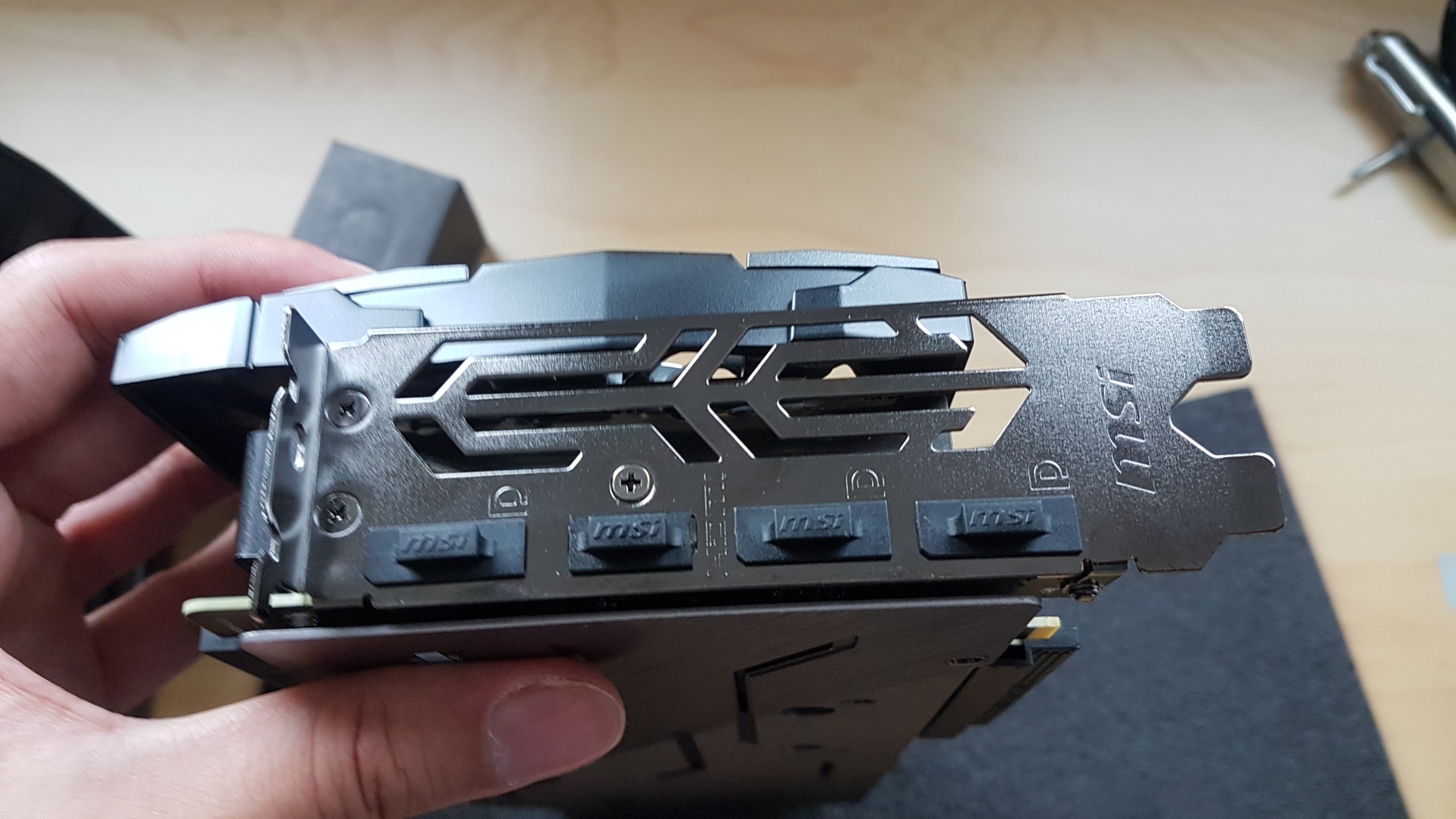 Leider war beim auspacken der Grafikkarte erst ein metallisches Klappern zu hören, was sich dann nach ein wenig leichtem wackeln, als lose Schraube entpuppte die rausfiel...