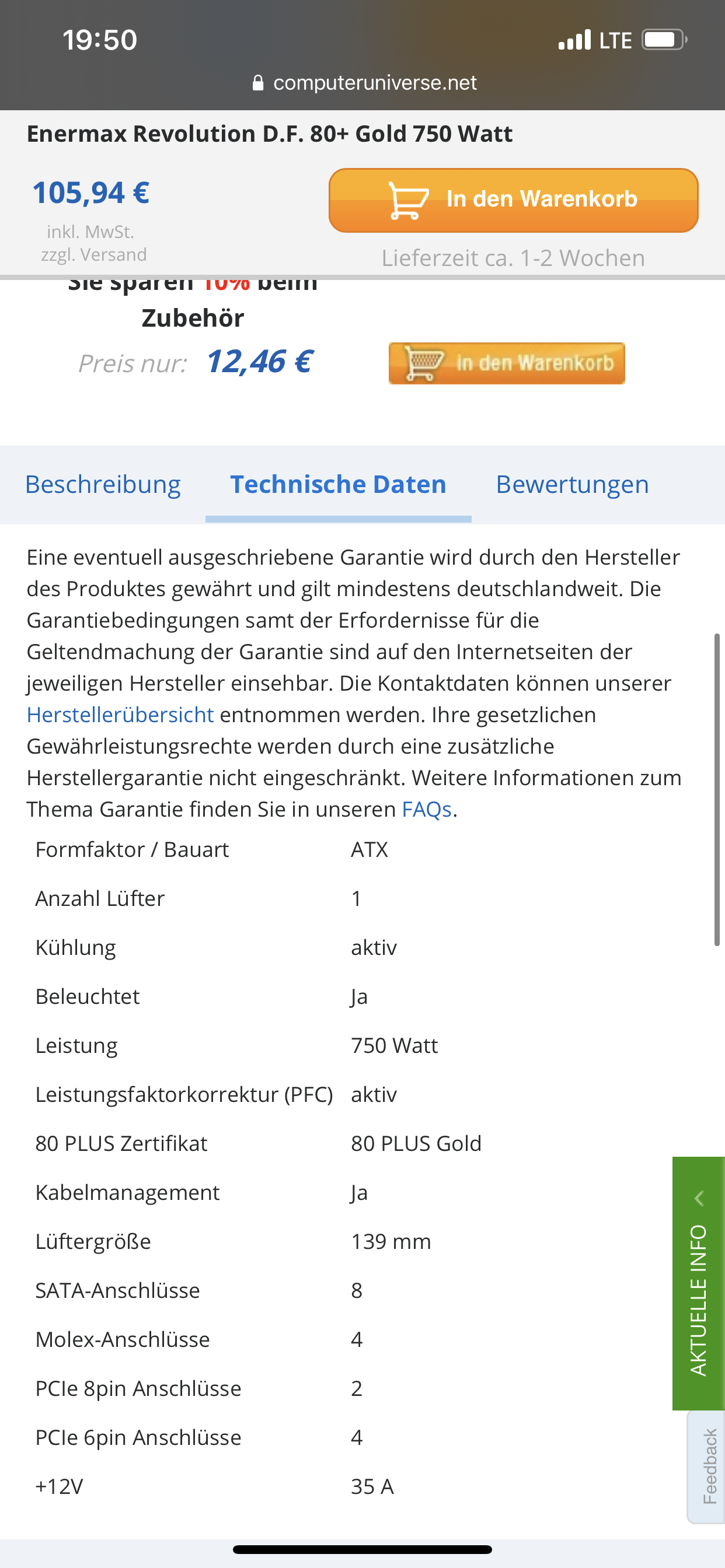 nach wochenlangem Suchen habe ich jetzt tatsächlich eine neue MSI RTX 3080 Gaming X Trio ergattern können. Vor lauter Freude habe ich mich nicht über die Karte schlau gemacht und ich denke das rächt sich jetzt. Die Karte wird ja über 3x 8 Pin Anschlüsse mit Strom versorgt und die werden mit Sicherheit auch alle benötigt, um die Karte zum Laufen zu bringen (aus Spaß wird MSI keine 3 Anschlüsse verbauen). Jetzt kommt das Problem. Mein Netzteil (https://www.mindfactory.de/product_...Performance-C-Series-Non-Modular_1029442.html) besitzt zwar 3x 8 Pin Anschlüsse, jedoch hängt eins davon am Mobo. Ja, ich weiß, Nvidia setzt eine Netzteilleistung von 750 Watt voraus, aber rein leistungstechnisch reichen die 700 Watt ja eigentlich locker aus (habe keine i9 10980xe mit dem Nvidia die 750 Watt begründet sondern lediglich einen Ryzen 7 3700x) und ja, das Netzteil ist nicht wirklich hochwertig, aber besteht irgendeine Möglichkeit, dass ich die Karte zum Laufen bekomme, oder läuft alles auf einen Tausch des Netzteils hinaus? Ich danke schon mal für alle Antworten!