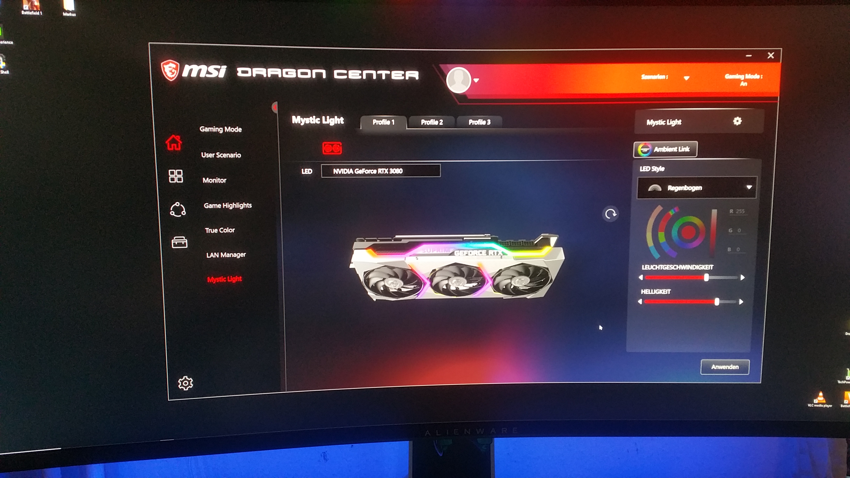Ist es Irgendwie möglich oder sonst wie die Farben der RTX 3080 einstellen zu können wie auch immer.