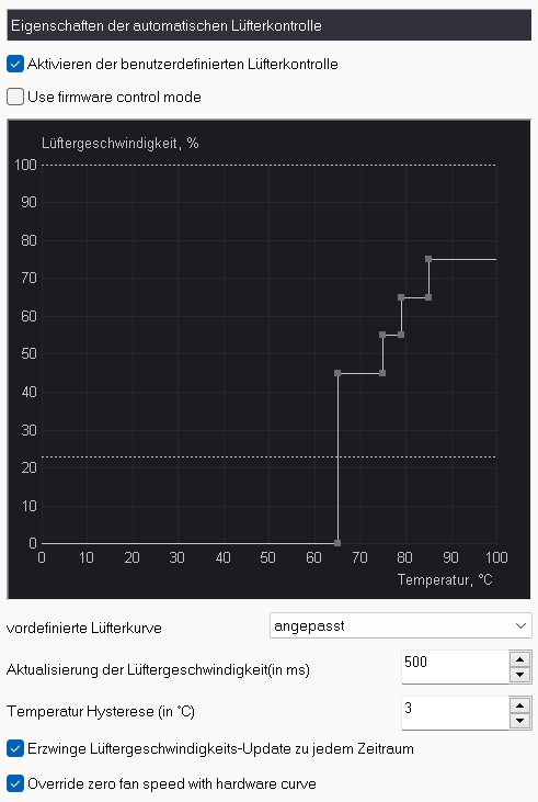 - MSI Afterburner an den Lüfterkurven rumgedreht (siehe Screenshot -> gestrichelte Linie bei 30% (?)) Wenn ich diese Einstellung übernehme laufen die Lüfter natürlich konstant, ZERO Fan scheint nur bei deaktivierter benutzerdefinierter Lüfterkontrolle eingeschaltet zu sein.