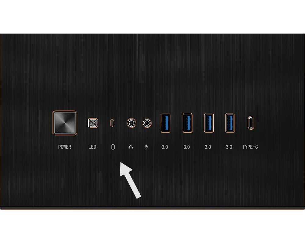 Mit USB 3.0 und Typ C vorne/oben....Öffnung um von hinten an das Mainboard zu kommen.