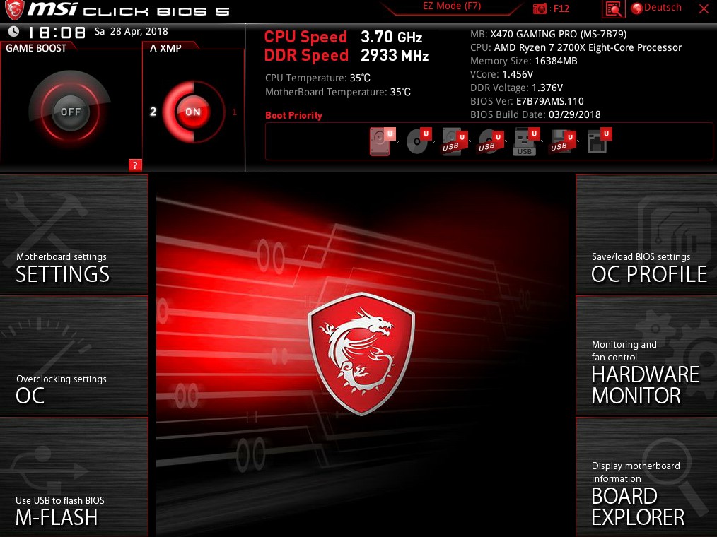 ich habe gestern das System aus der Signatur inbetrieb genommen (R7 2700X, MSI X470, RX580)