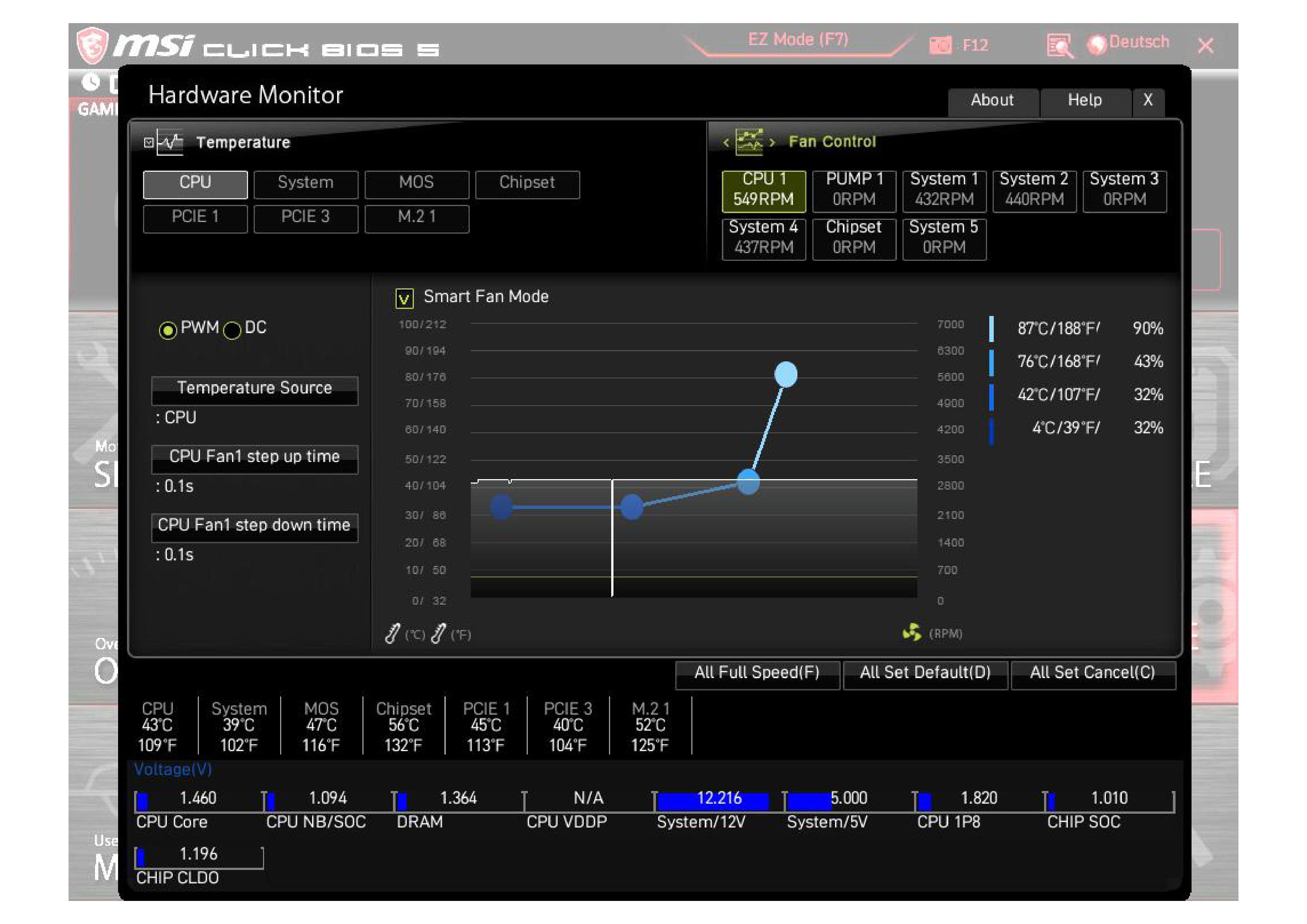 Auch kannst Du einstellen, das er erst später hochdreht, in dem Du die Kurve nach oben anpasst.
