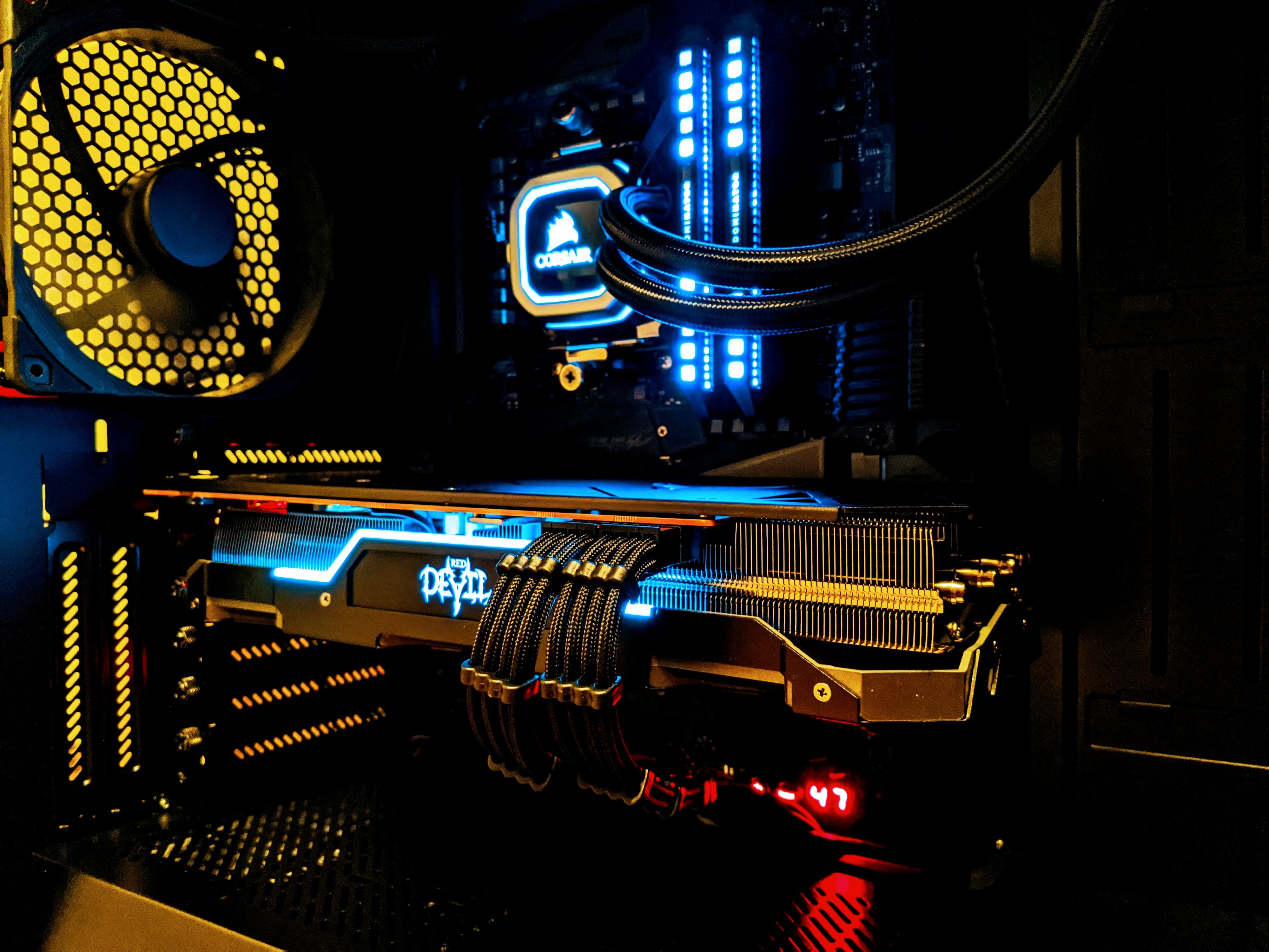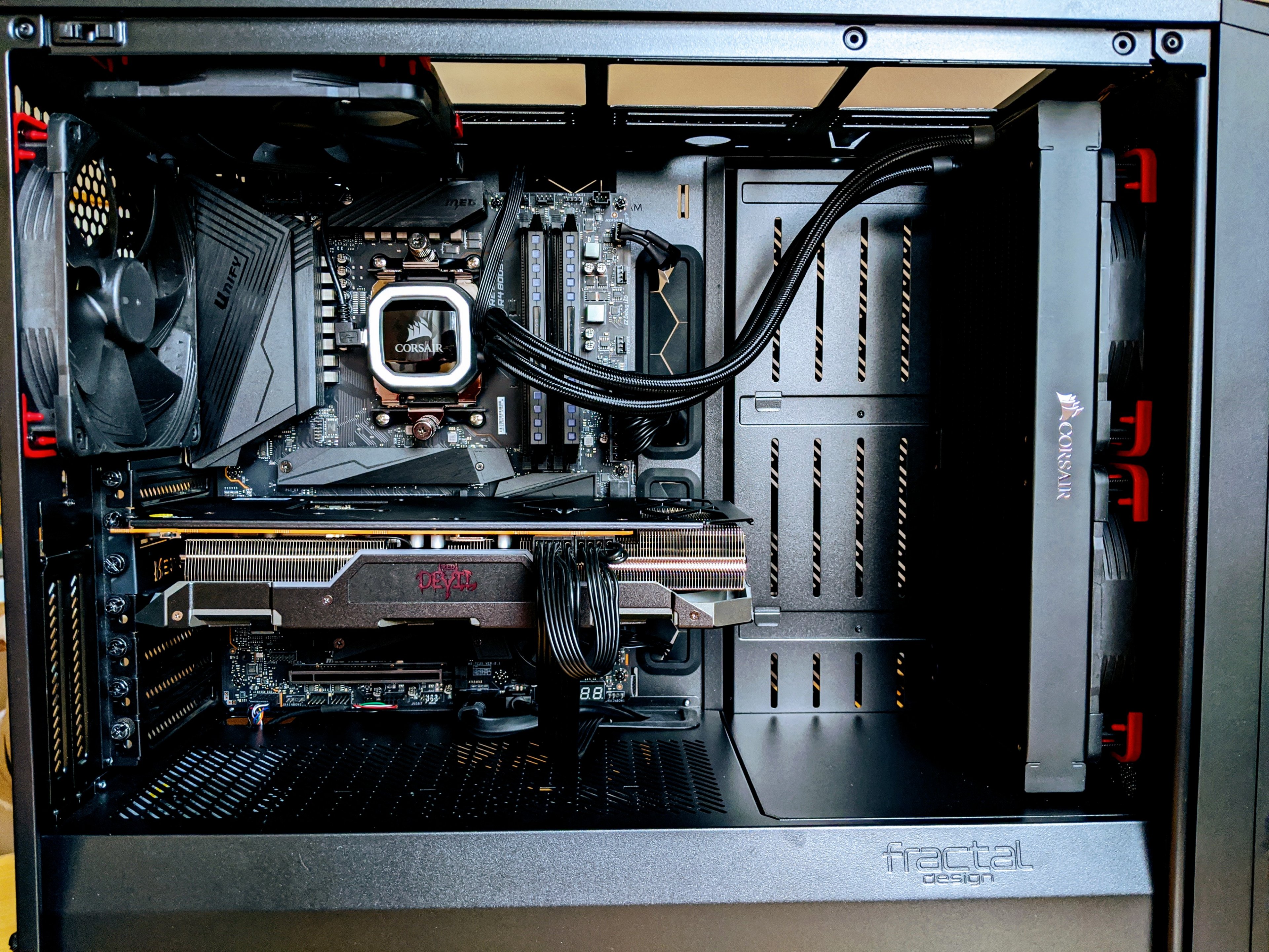 Ich bin auch seit kurzem ebenfalls stolzer Besitzer eines Unify-Boards. Ich wollte von Anfang an nur minimale LEDs und beim Rest möglichst schwarz haben. Ich finde, mein Selbstbau ist sehr gut gelungen und habe da nicht unbedingt auf die Preis/Leistung geschaut. Nur die LEDs der Pumpe, RAM und GPU leuchten Eisblau.