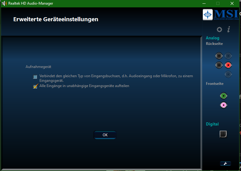 Was genau ist eigentlich das Problem der Audio-Steuerung? Soll der Sound weiter über die hinten angeschlossenen Boxen kommen, und nicht über das Headset? Kann man das nicht in der Realtek Audio Console umstellen? Ich kann das leider nicht testen, weil mein Sound über HDMI läuft und Realtek keine HDMI-Geräte anzeigt.