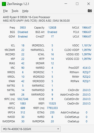 4000 Mhz Ram bekomme ich aber trotz 4000 MHz CL18 Modulen nicht zum Booten. Nur 3933 Mhz gehen mit 1966 Mhz FLCK... 2000 FCLK bootet mit alles unter 4000 Mhz RAM.