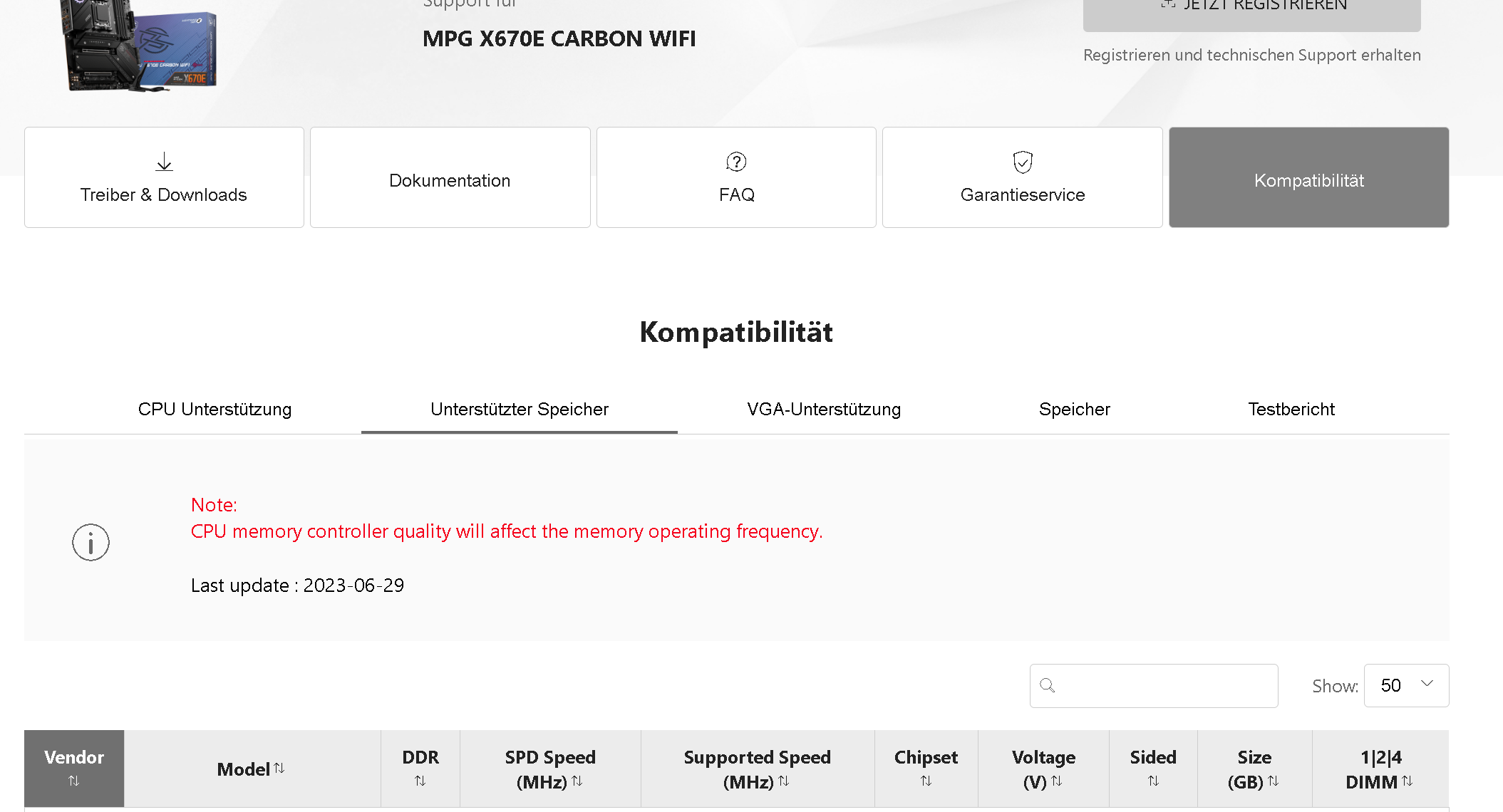 Ich kriege das zwar gleich wieder um die Ohren gehauen, aber das Board unterstützt laut QVL-Liste vom 23.6.23