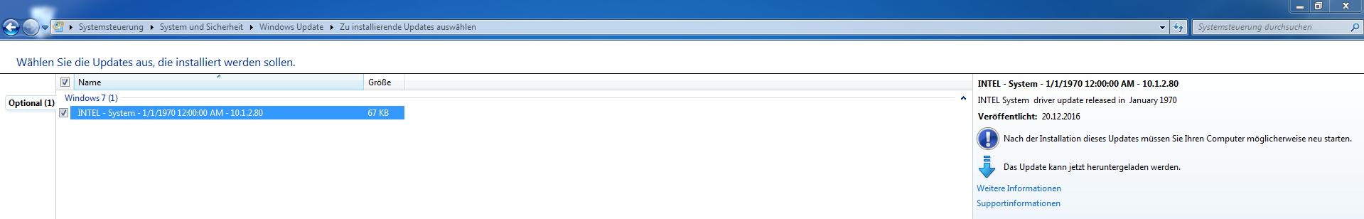Die Windows Updates konnte ich alle sauber installieren aber ein Update von Intel zeigt sich immer noch und diesen habe ich noch nicht installiert. Da wollte ich erstmal hier nachfragen ob man nicht diesen auch manuell installieren kann: