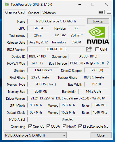 Passt alles, bis ich auf die !!!DUMME!!! Idee kam ein Spiel zu starten. Egal welches Spiel, meine FPS gehen nach ca. 5 Sekunden derart in den Keller das ich Probleme bekomme das Spiel zu beenden. Einen Fehler spucke er mir noch aus bevor er das eine mal abstürzte "NVIDIA Windows Kernel Mode Driver, Version 372.54 reagiert nicht mehr.