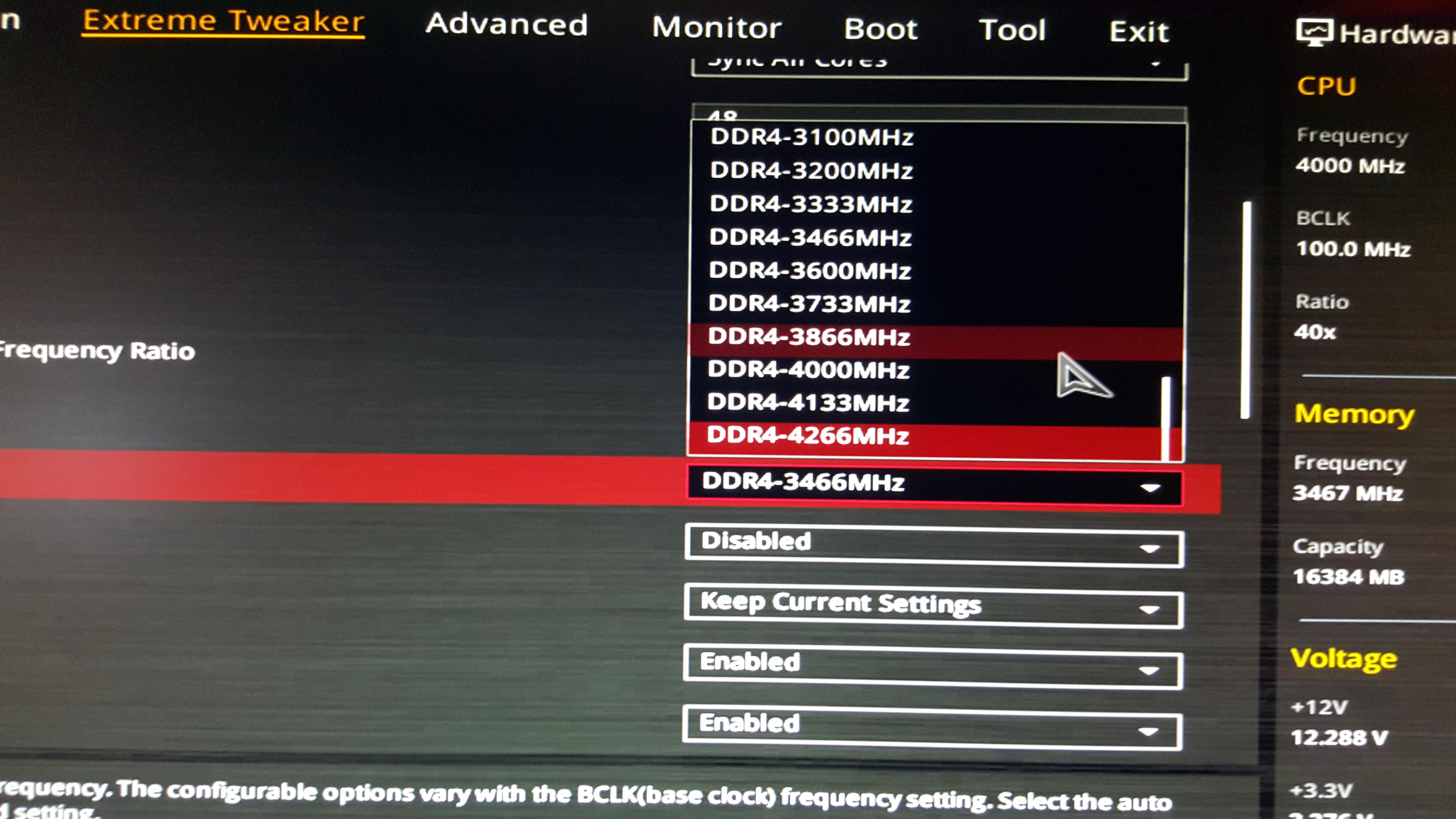 Explizit zu würdigen sind die feinen Abstimmungsmöglichkeiten dür den Speichertakt. So manch einem X99-Nutzer dürfte dieser screenshot die Tränen in die Augen treiben: