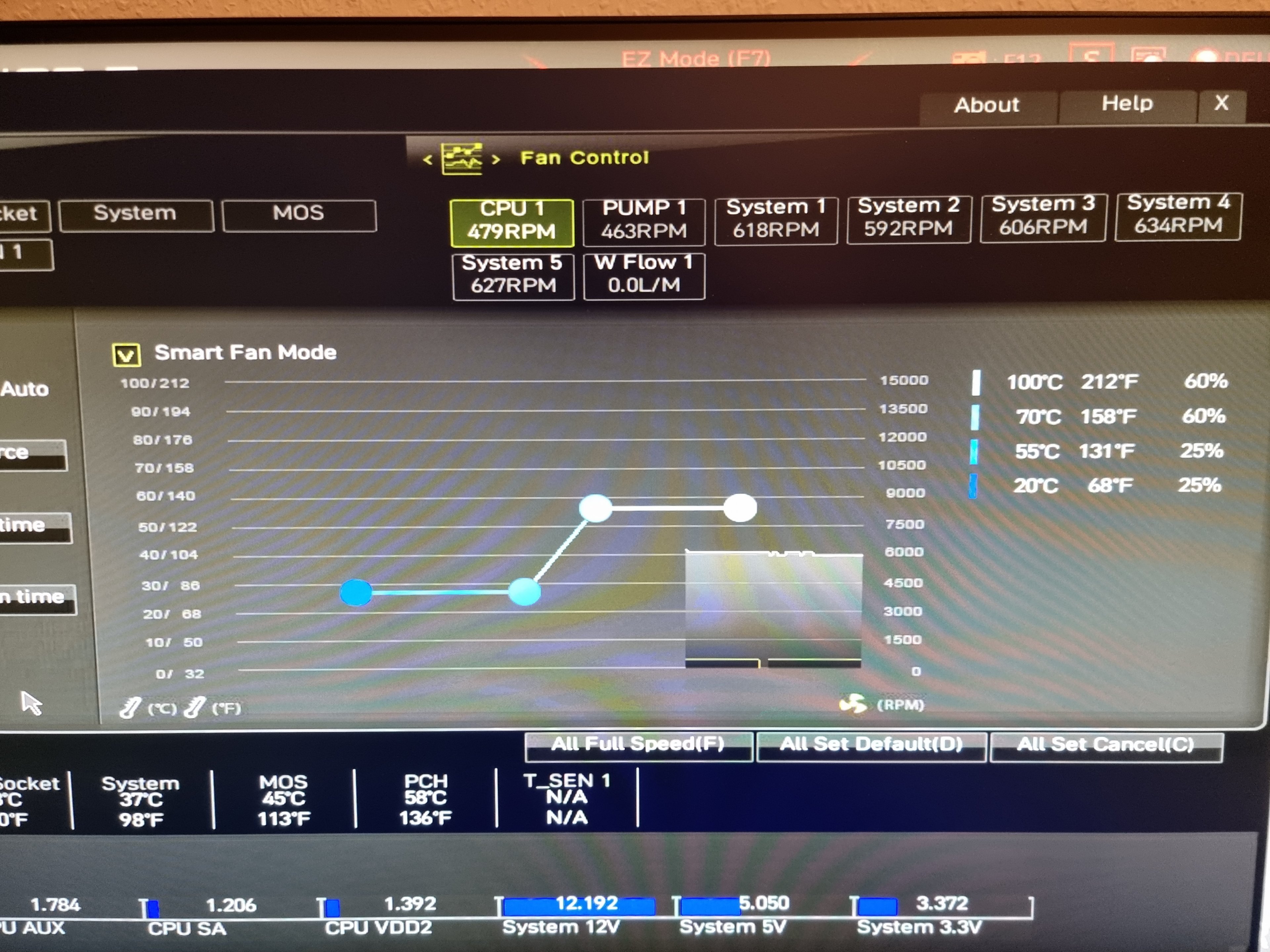 Das Mainboard liest die Werte anscheinend grundlegend falsch aus (siehe Foto). Es wird eine Range bis 15000 angenommen, was ja vollkommen falsch ist. Bios ist aktuell, vielleicht das Problem? Ich bin der Meinung, dass da vorher eine deutlich geringere Range war.