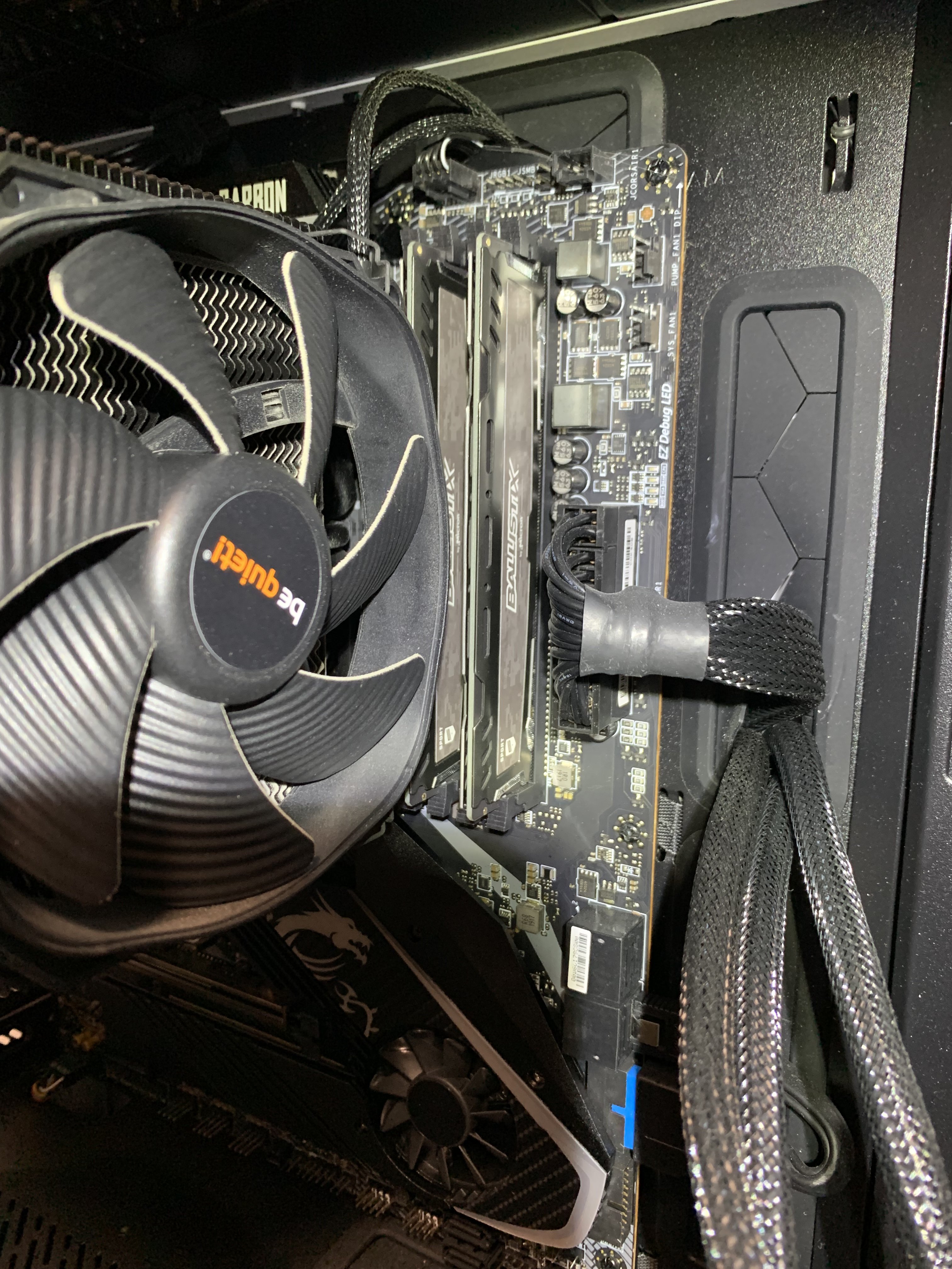 Also Kabel raus, Netzschalter aus, Rechner aufgeschraubt, Graka raus, Frozr Shield abgeschraubt, SSD eingebaut, alles zurück gebaut und auf den Startknopf gedrückt -> CPU LED leuchtet rot und System bootet nicht. Nur die Lüfter drehen laut.