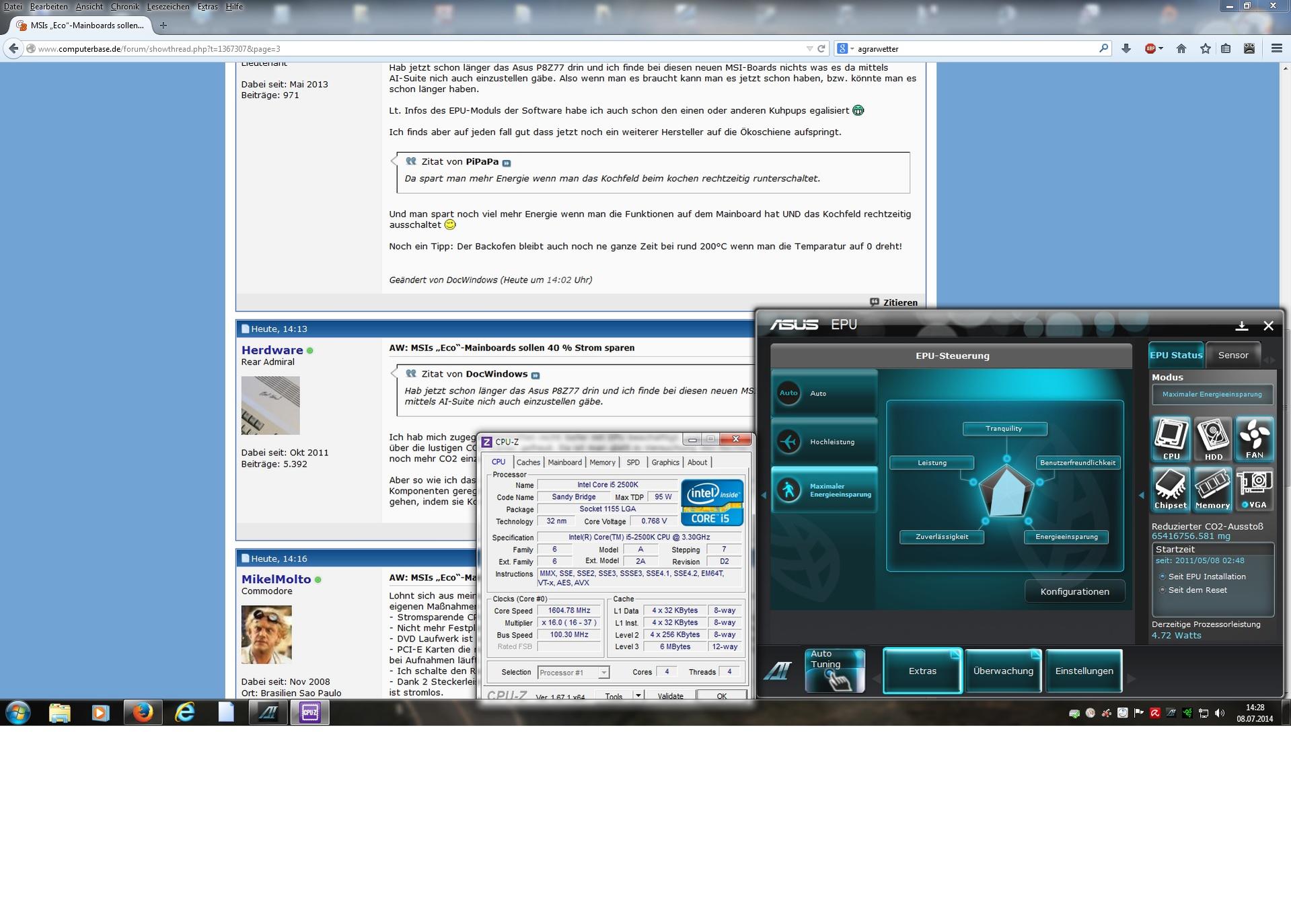 Ich hab mich zugegebenermaßen nicht tiefer mit EPU beschäftigt. Hab es auch in der AI-Suit eingeschaltet und mich über die lustigen CO2-Zähler gefreut. Da ist man glatt in Versuchung den Recher Tag und Nacht laufen zulassen, um noch mehr CO2 einzusparen und die Umwelt zu retten.