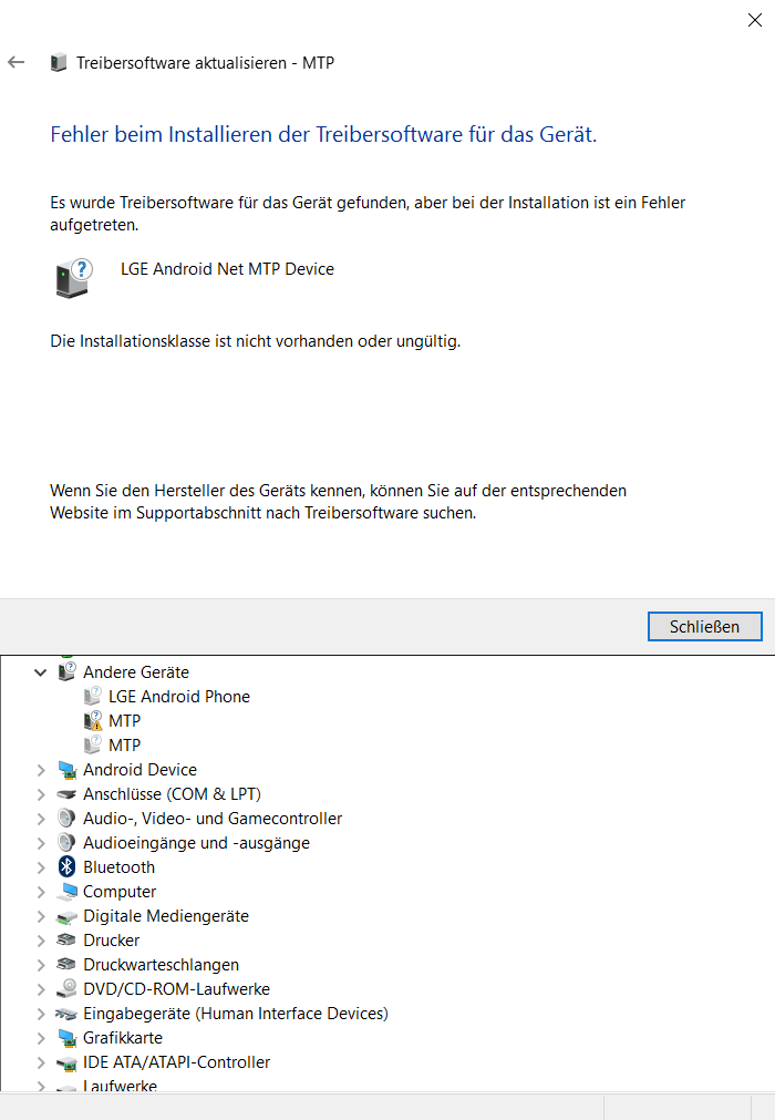 mein Laptop erkennt mein Smartphone nicht mehr. Es ist definitiv ein Treiber Problem, aber ich bekomme es nicht gelöst.