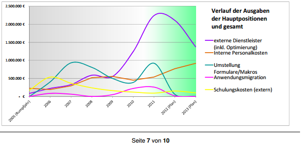 Der nächste Punkt ist der Kauf der Rechner für Windows 7, was man auch anzweifeln könnte. Hier wurde, denke ich, analysiert, welche Rechner verfügbar sind und wie gut Windows 7 auf ihnen liefe. Anscheined wäre ein Upgrade nötig. Im Fall von LiMux, was wie erwähnt Ubuntu 10.04 + KDE 3.5 ist, reicht ältere Hardware, wodurch keine neue Hardware benötigt wird. Also Mehrkosten gerechtfertigt.