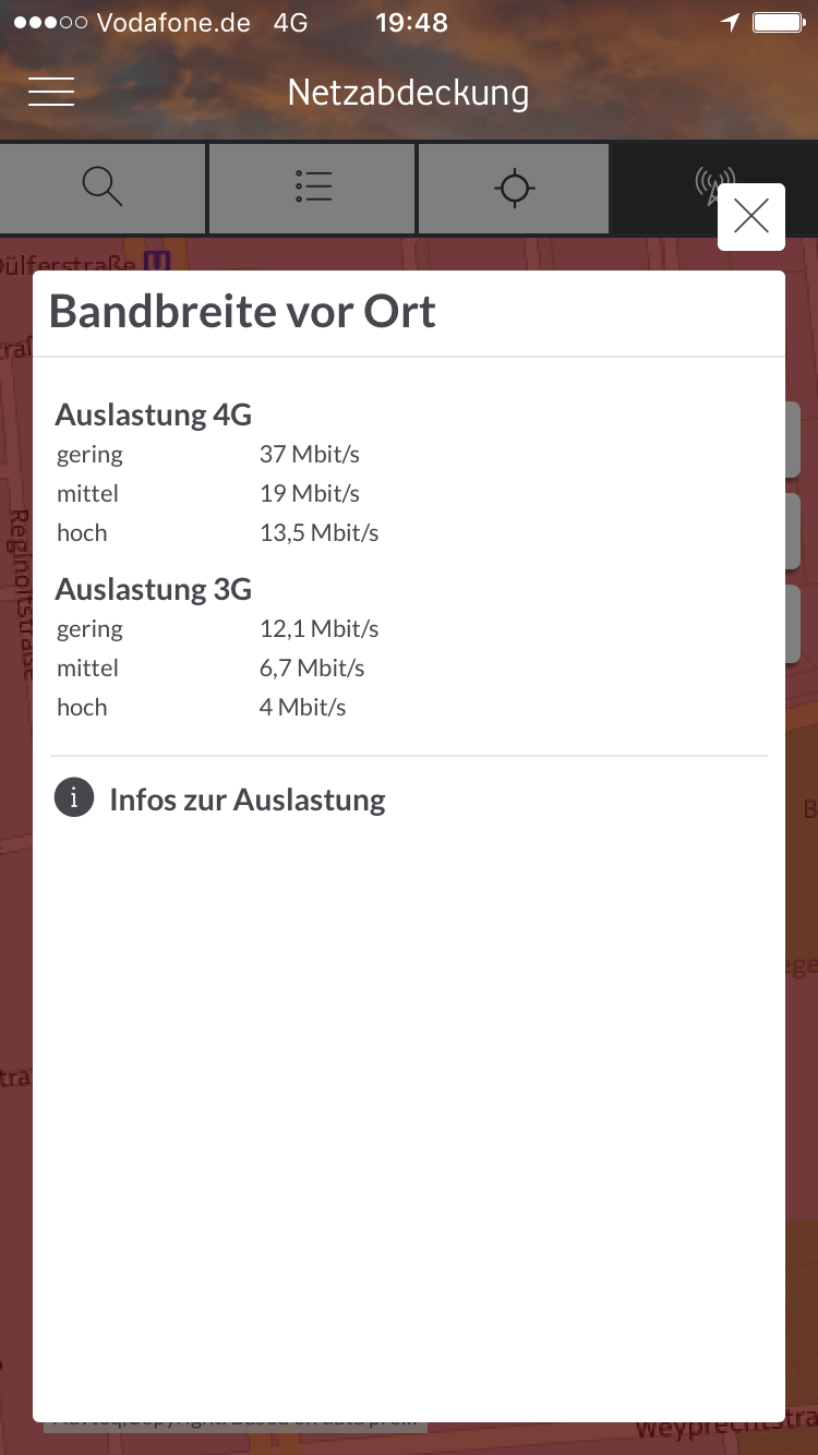 Auch kannst du hier sehen, wie stark das Netz einbricht, sobald es zu ein wenig traffic kommt. Ist die Auslastung tatsächlich hoch, ist mein Wert noch deutlich unter dem von Vodafone vorausgesagten Wert. Auch bin ich an dem Standort noch nie über 20mbit gekommen.