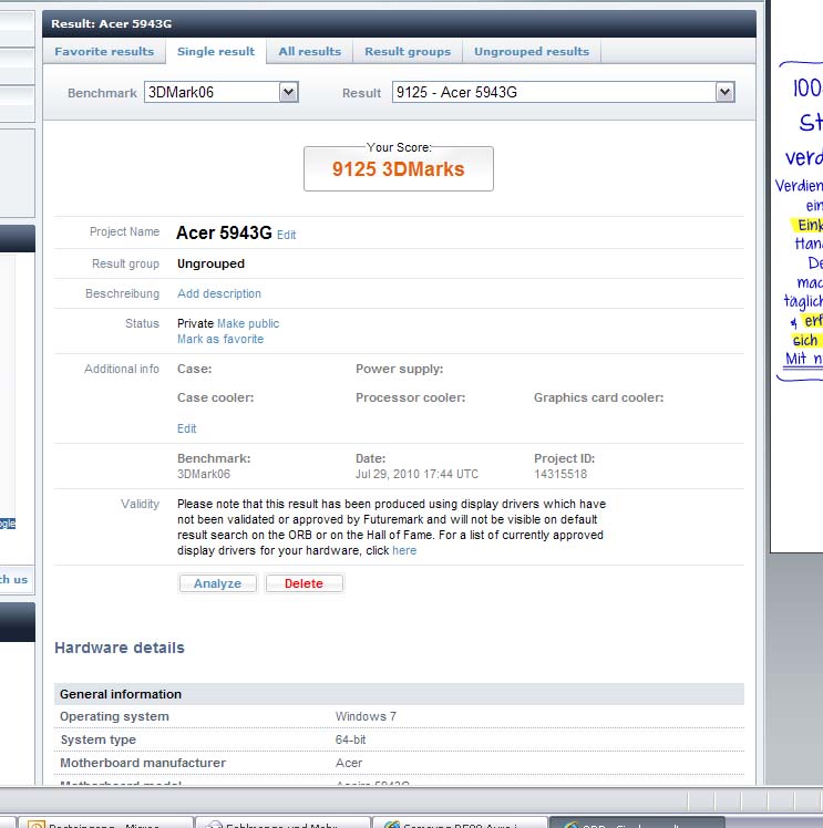 Im Gegensatz zu der Testkonfiguration von Notebookcheck habe ich also "nur" einen i5-450 drin.