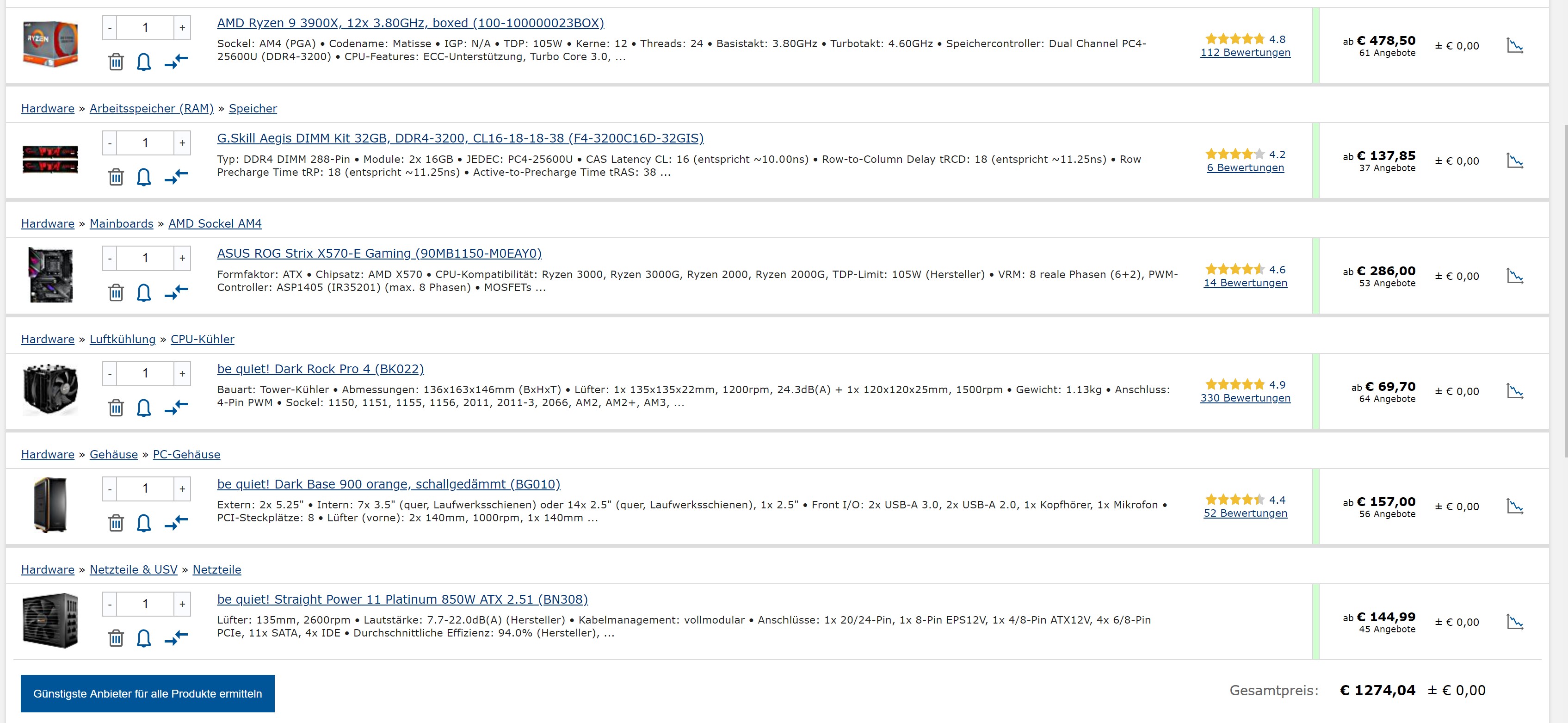 Das wÀre mein Setting bisher, muss nur schauen welches MB, ich wÀre auf jeden Fall fast 800 ⏠billiger als beim Intel System.