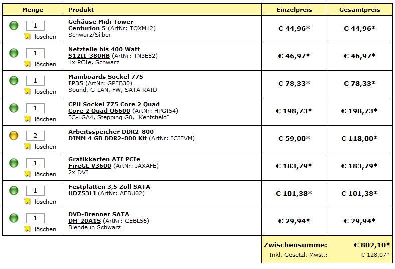 - einfache Workstation-Graka / wenn doch nicht benötigt, durch eine GeForce 8800GT ersetzen!
