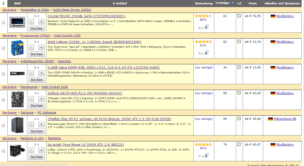 da ich meinen Laptop verschenkt habe ist für mich die Zeit gekommen, mir selbst einen Rechner zusammen zu bauen.