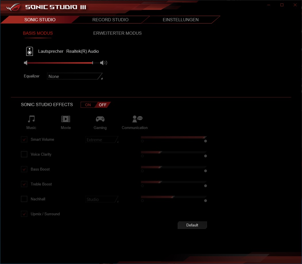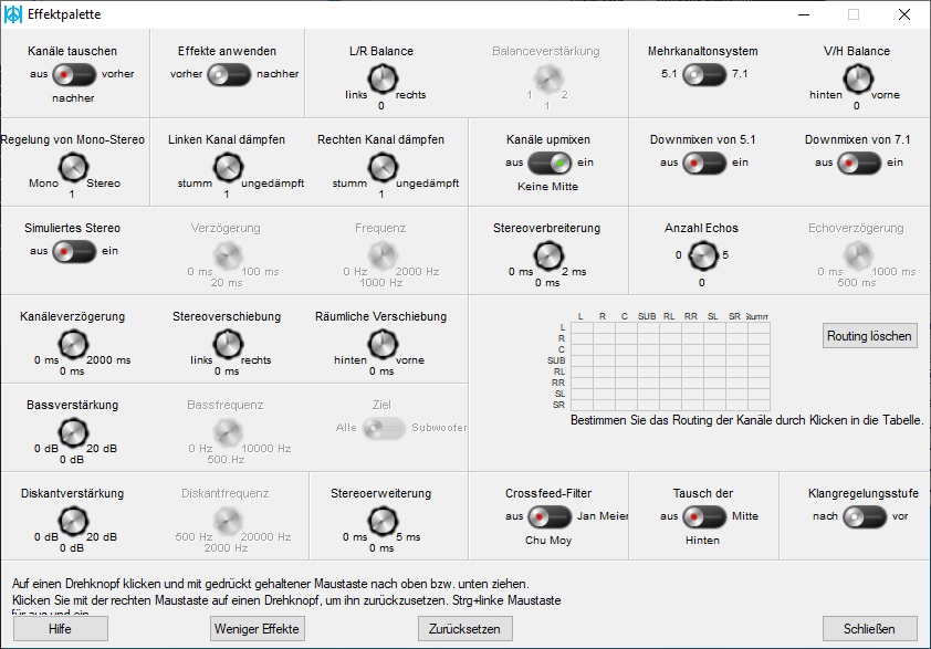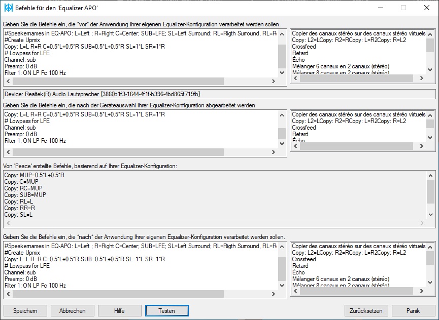 Hauptproblem ist aber, wenn ich Musik mit mein Creative Labs Inspire 6.1 Speaker höre, dann konnte ich mit meiner alten Karte einstellen das der Sound auf allen Boxen gleich raus kommt, dies schaffe ich mit dem Onboard Sound nicht. Diese Einstellung von der SonicStudio3 (UpMix/Surround) ist mega schlecht bzw. kommen Stimmen nur aus dem Center Speaker raus, möchte aber das überall das gleiche raus kommt und ich bei den Boxen die Lautstärke dann einzeln nachregeln kann. Gibt es da zufällig ein Trick, oder benötige ich dafür eine neue Soundkarte?