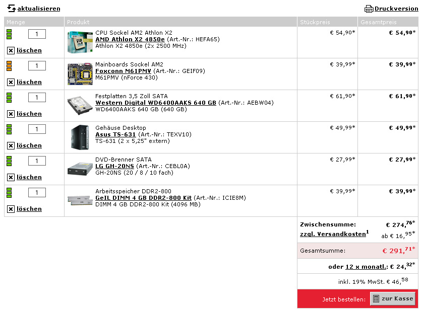 Wollte mir einen neuen PC zur Musikprdouktion zusammenstellen bis ca. 600 € und bin nicht so der Experte, was PC-Hardware angeht. Wär cool, wenn ihr mir da helfen könntet und mir ein paar Systeme zusammenstellen würdet. Soundkarte (schon vorhanden) kann außer Acht gelassen werden, Grafik ja sowieso. Möglichst 4GB Ram und ob Quad oder Duo ka.