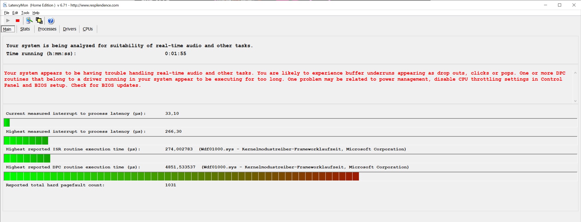 Bekomme aber auch jedes mal andere Meldung von LatencyMon, bzw weiß ich nicht wie das deuten soll, was mir angezeigt wird.