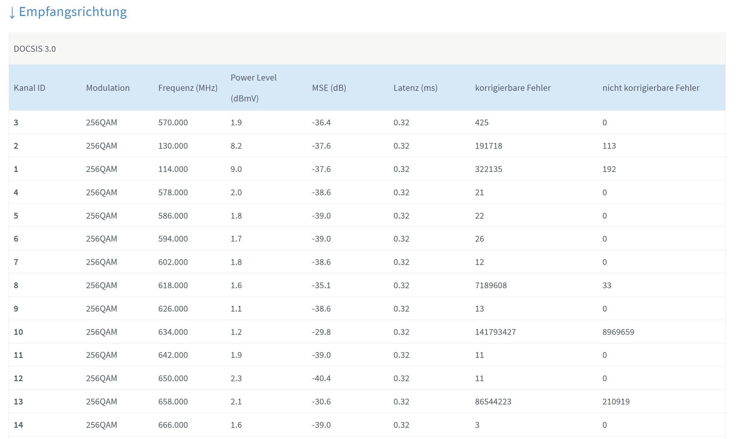 Das sind aber schon viele Fehler. Die Box läuft ja erst paar Stunden, oder? Wie sieht das Spektrum aus? Und die Verbindung allgemein?