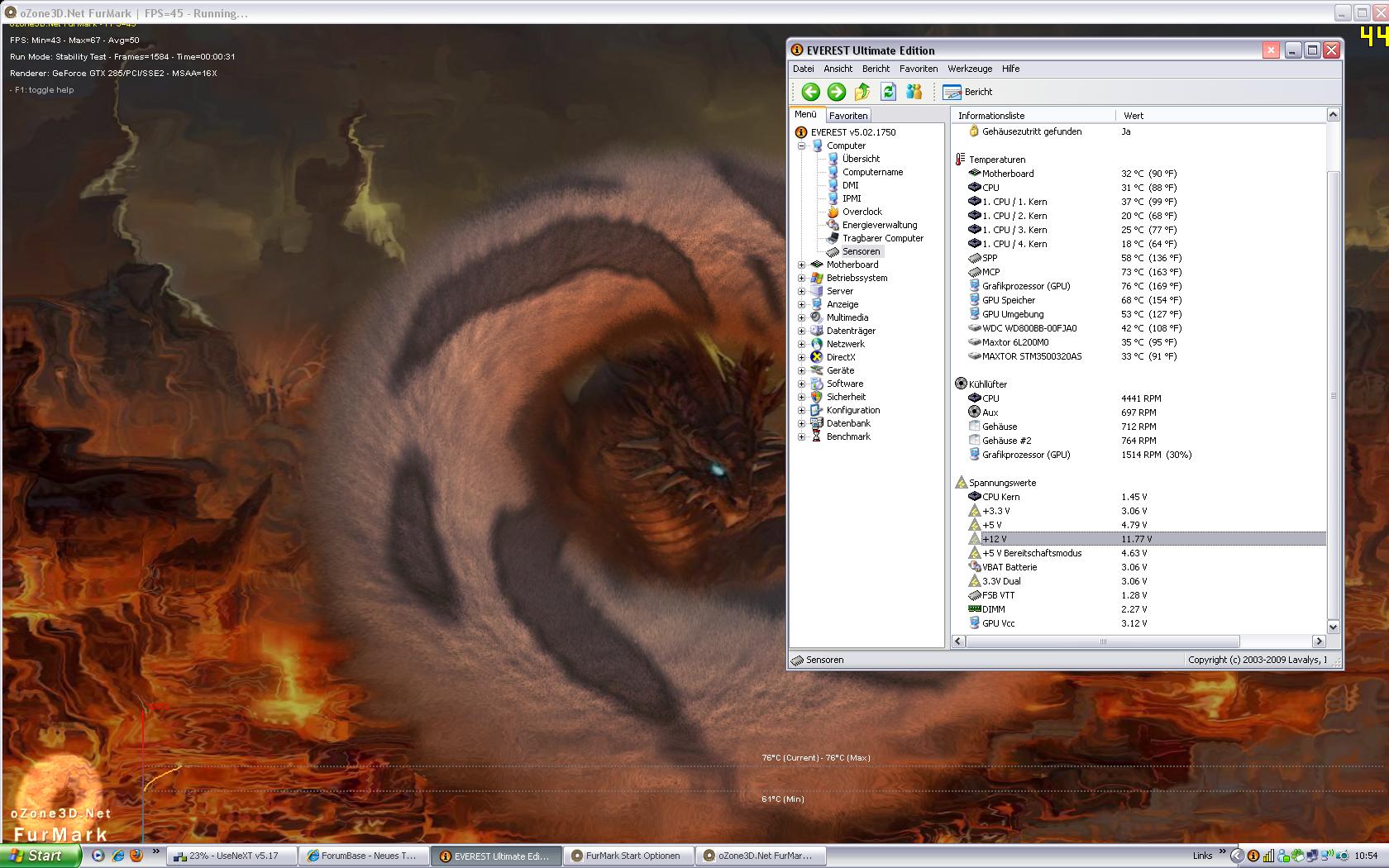 Und hier mal mit Furmark: