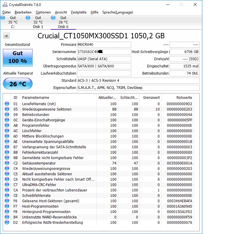 Beim ersten anschließen habe ich gleich mal Crystal Disk draufschauen lassen, in Ordnung ist sie wohl.