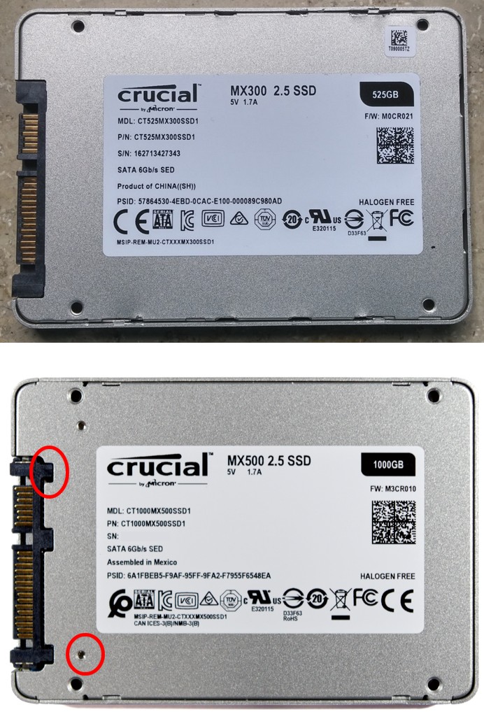 Wenn man sich die Ränder des Stickers ansieht, gerade auf der rechten Seite wo es scheinbar schon nicht mehr richtig klebt, könnte tatsächlich jemand seine MX300 durch eine MX500 getauscht und die Sticker gewechselt haben.