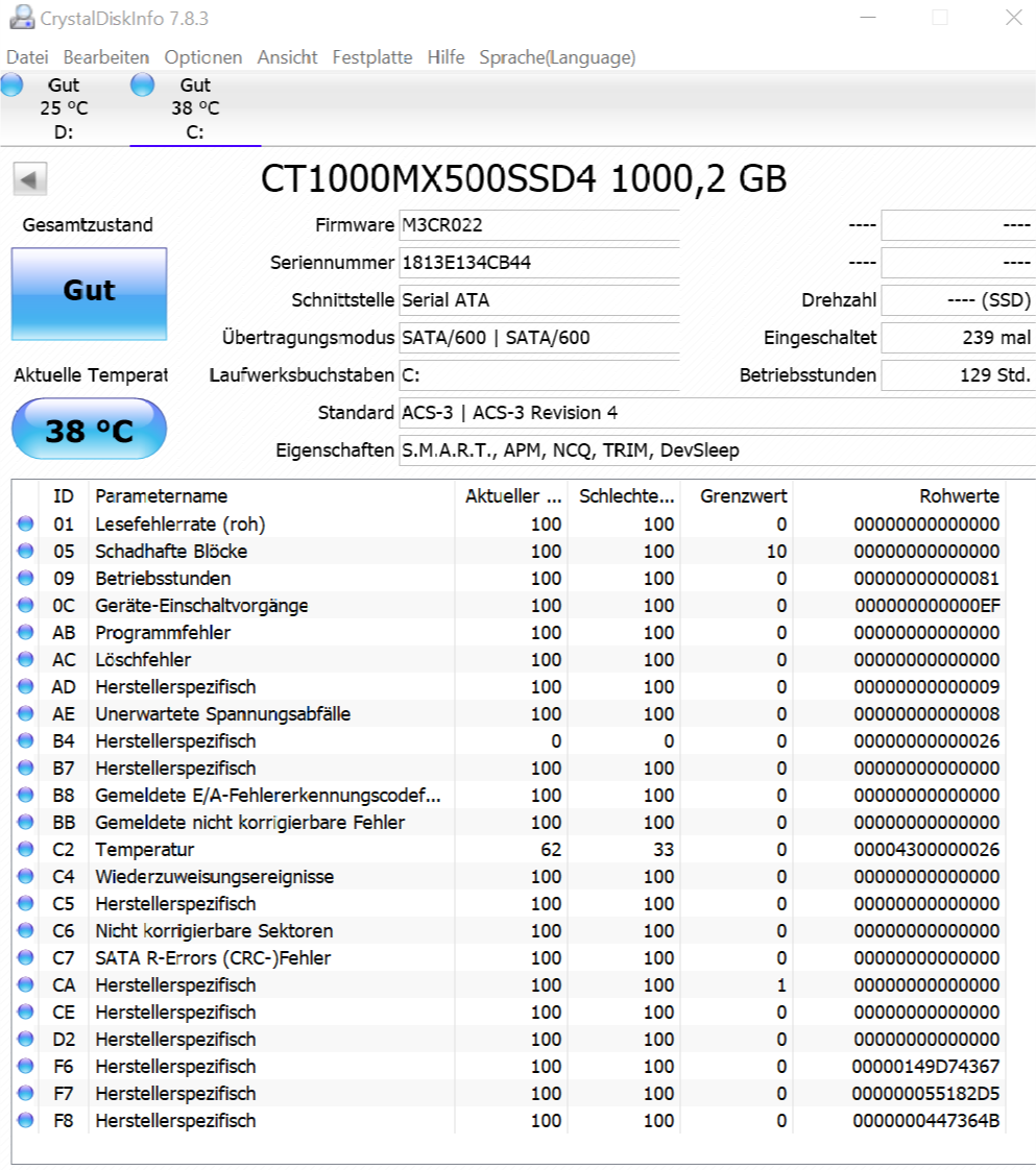 Seine CDI Version ist zu alt... die kennt die MX500 noch nicht (zu erkennen an den vielen Attributen mit "Herstellerspezifisch")cartridge_case schrieb:@Darklordx: Wieso werden bei deiner keine Schreibvorgänge geloggt?! o.O