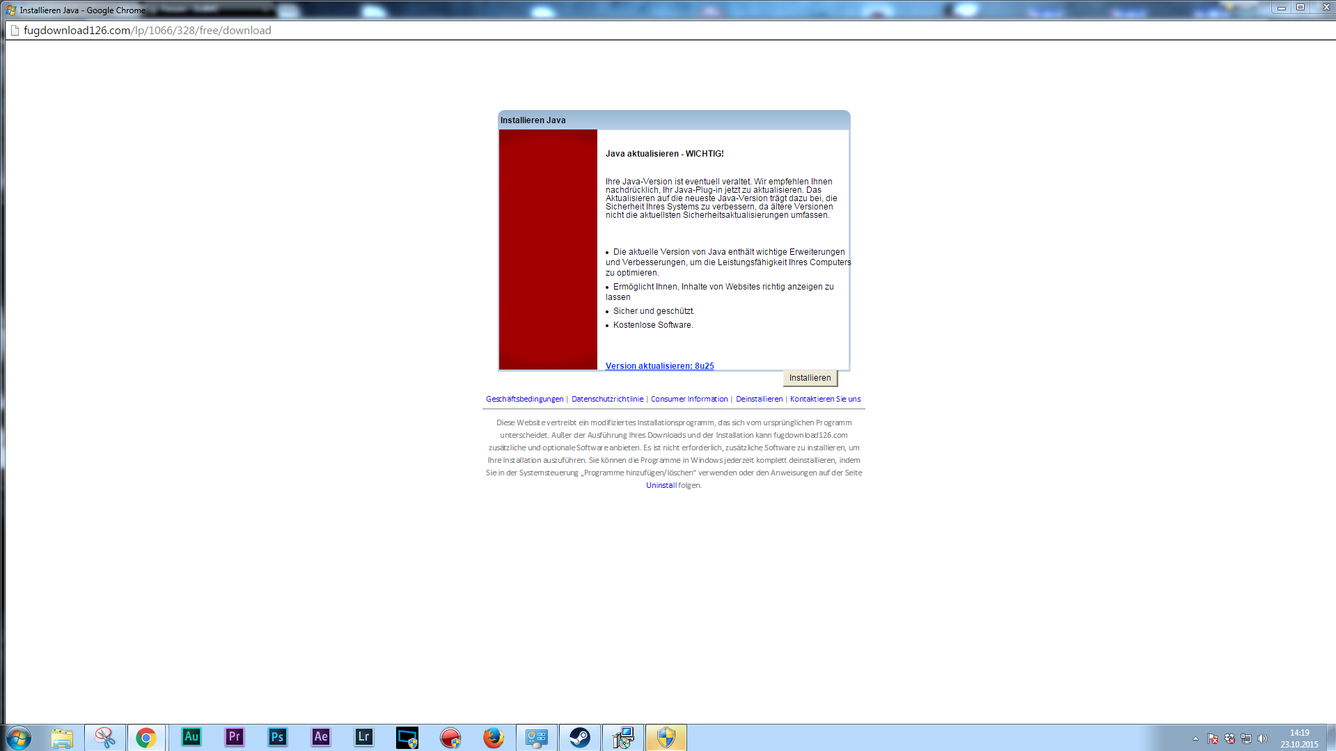 Dort wird seit kurzer Zeit ein popup geöffnet in dem steht das meine Java Version veraltet ist.