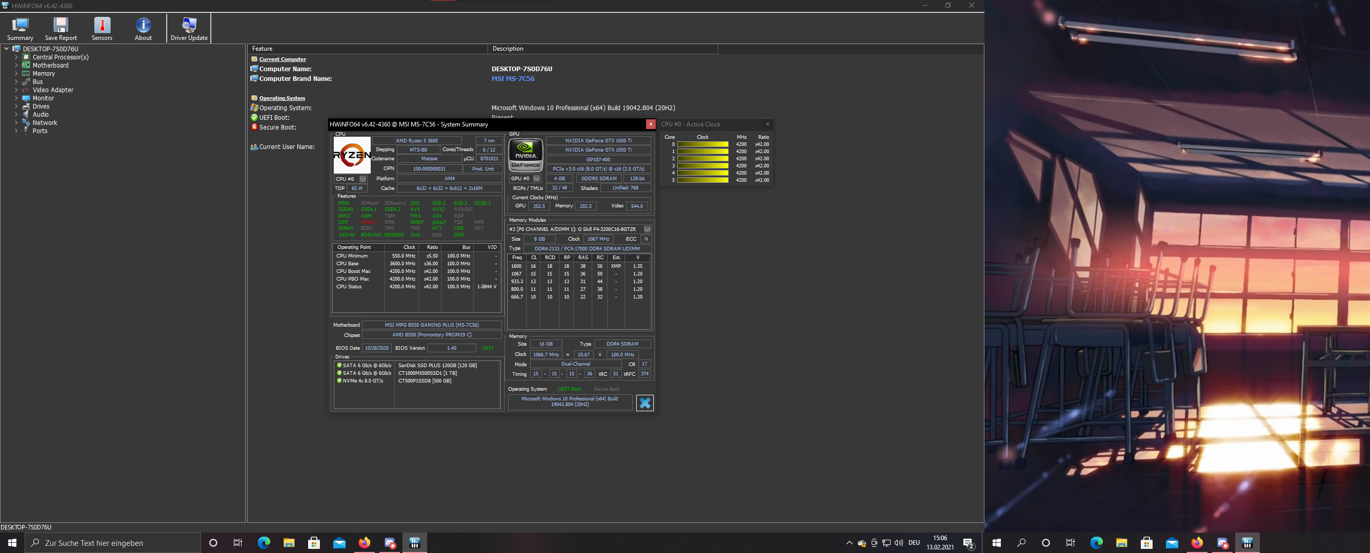 Bitte mal einen Screenshot von der System-Summary von HWiNFO64 posten, die bisherigen Information sind etwas schwammig.