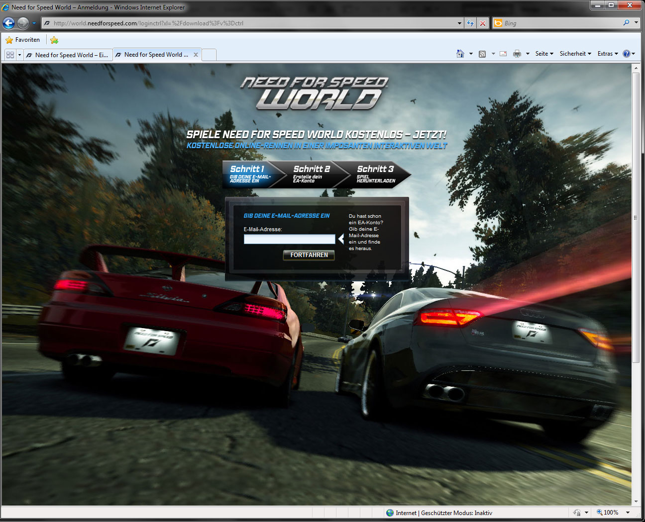 Hier zwei Bilder: (Als ich auf den Link vom ersten Bild gedrückt habe "Jetzt kostenlos spielen", kam das andere Bild)