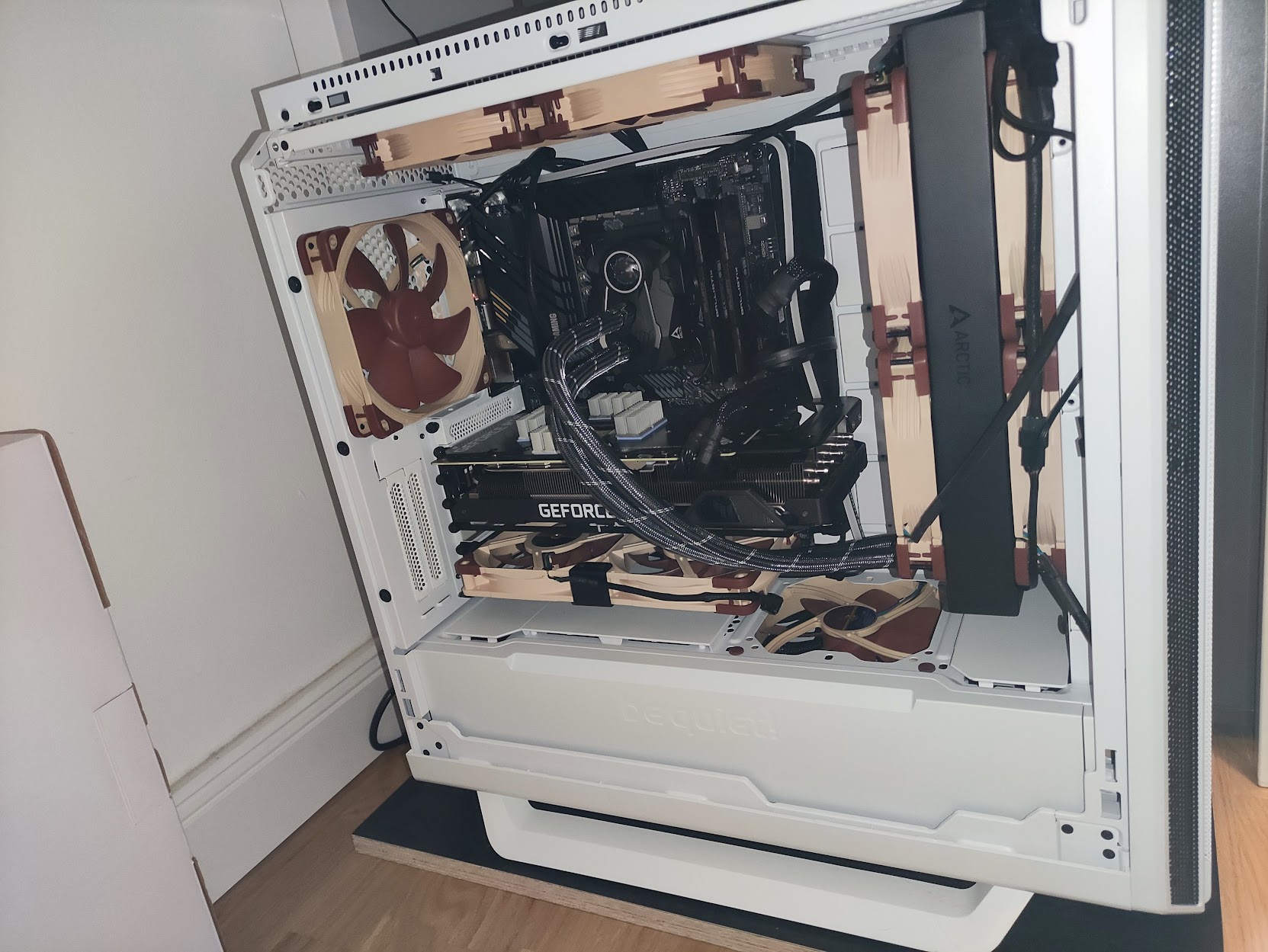 Puh, 8 Lüfter Anschluss. Ich habe schon 5 Gehäuse und 2 am CPU und dachte, dass ist Overkill. Zufällig alles Noctuas aber das Motherboard liefert benügend Schlüsse. Ich denke aber, mehr geht bei mir auch nicht. Wer braucht 8 + vermutlich 5 bis 8 zusätzliche am Motherboard? Krasser Wirbelsturm.