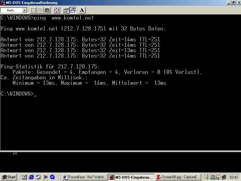 Antwort von 194.24.128.43: Bytes=32 Zeit=16ms TTL=247