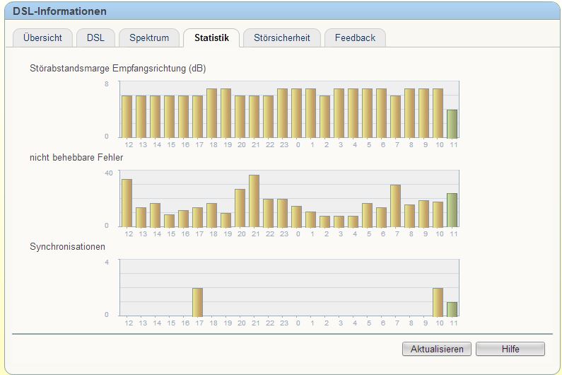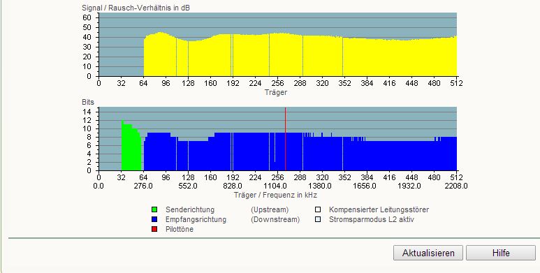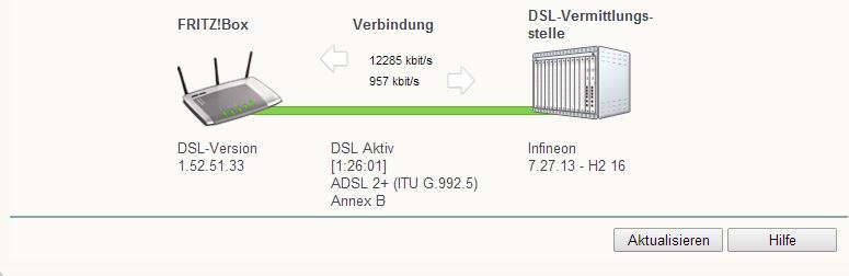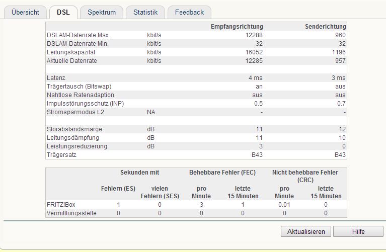 Also hat er die Leitung angepasst und nun sehe ich, dass der DSLAM eine maximale Datenrate von nur noch 12288 Kbits/sek. (Empfangsrichtung) & 957 Kbits/sek. (Senderichtung) hat.