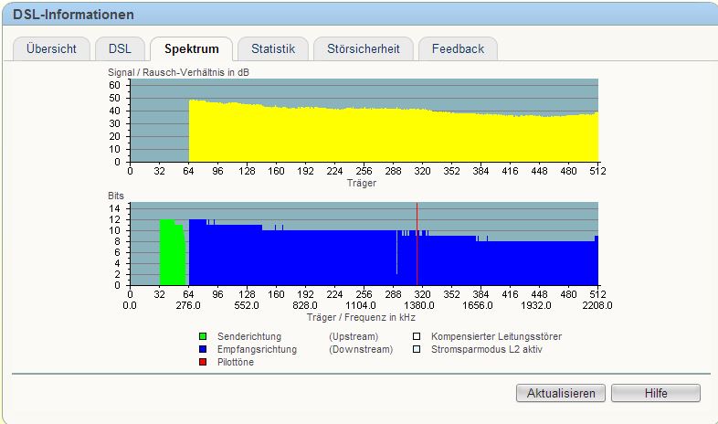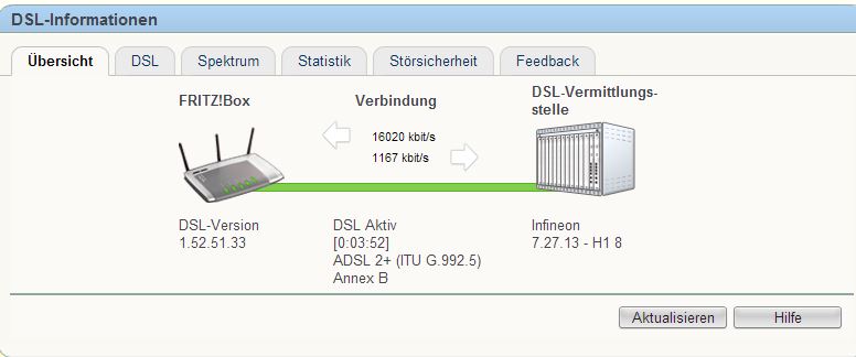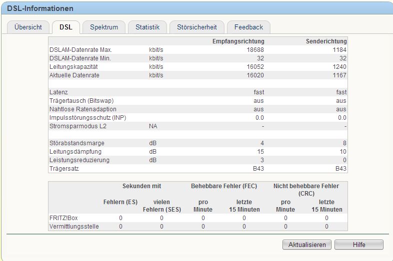 Die Leitungskapazität betragen nämlich die vollen 16052 Kbits/sek. (Empfangsrichtung) & 1167 Kbits/sek. (Senderichtung).