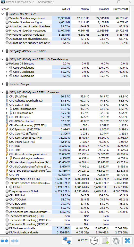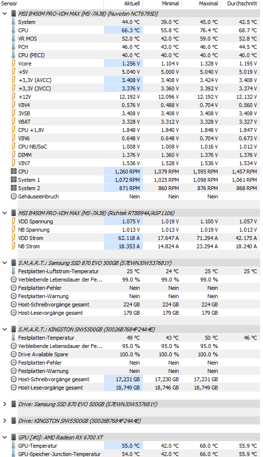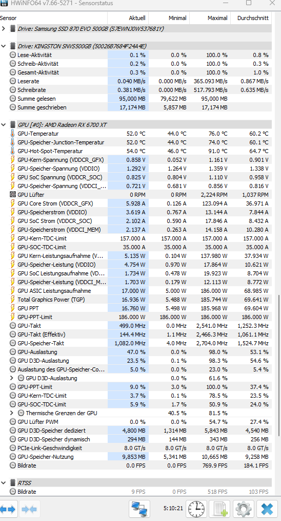 - Temperaturen während dem zocken mit HWINFO gecheckt: CPU Rekord 82 Grad, GPU 80 Grad (90 am Hotspot)