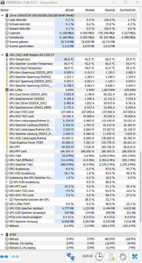 - Mir ist aufgefallen, dass der GPU-Auslastungsrekord bei HWInfo bei 96% und die D3D Auslastung auch bei 95% lag, ob und wie ich was dagegen unternehme weiß ich nicht?