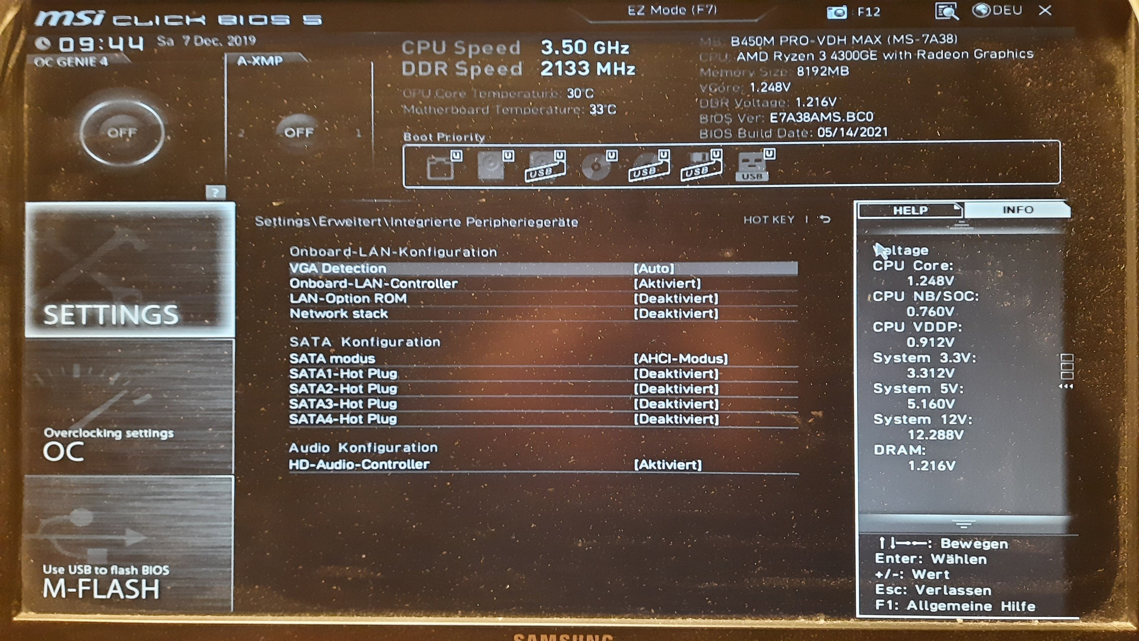 ich wollte dem alten Office Pc meiner Eltern Aufrüsten und habe dafür denn RAM das Mainboard und die CPU gewechselt. Und wollte dann über die SSD auf der Windows 10 Installiert ist Booten. Wenn ich das mache kommt ein Ladescreen und ich lande wieder im Bios.