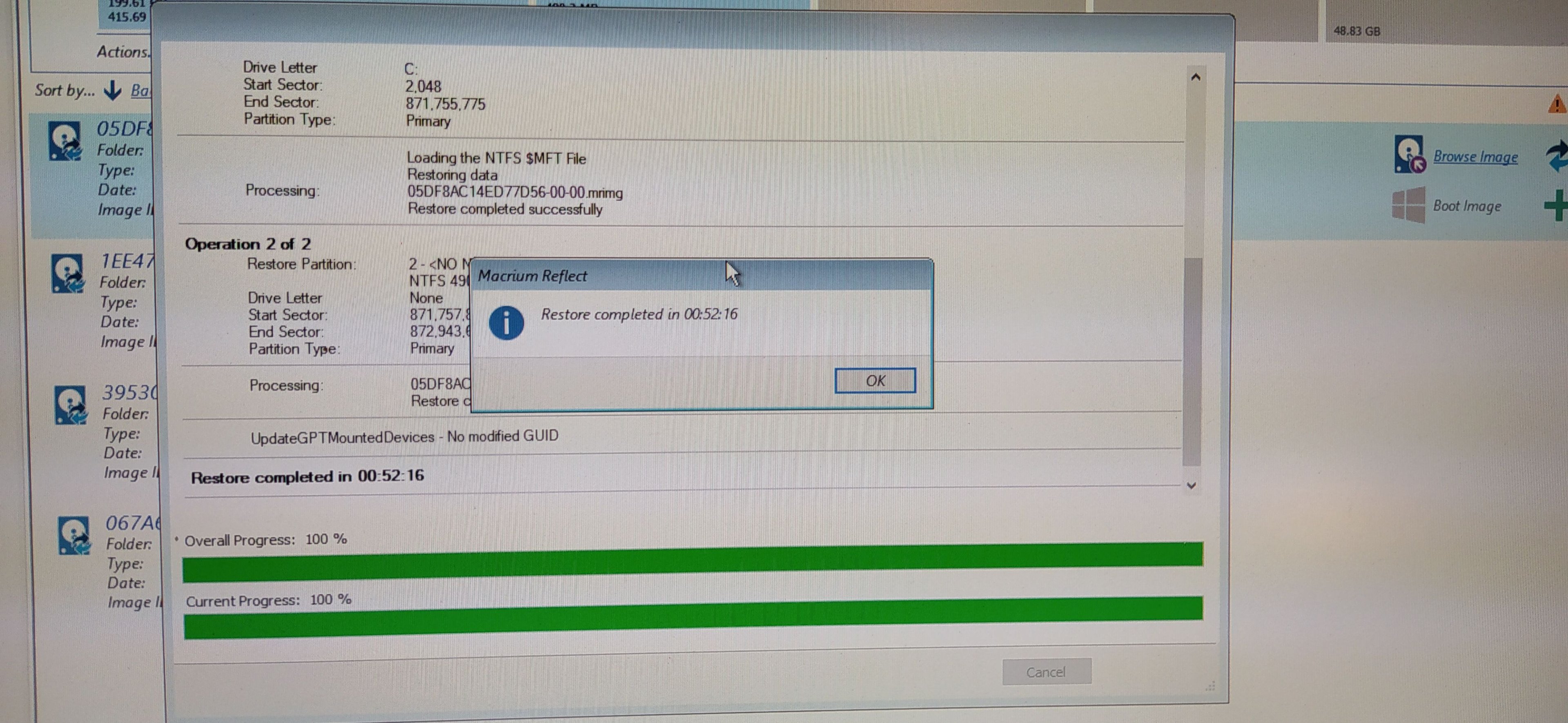 Im Anhang auszugsweise ein paar Fotos des letzten Versuchs mit macrium