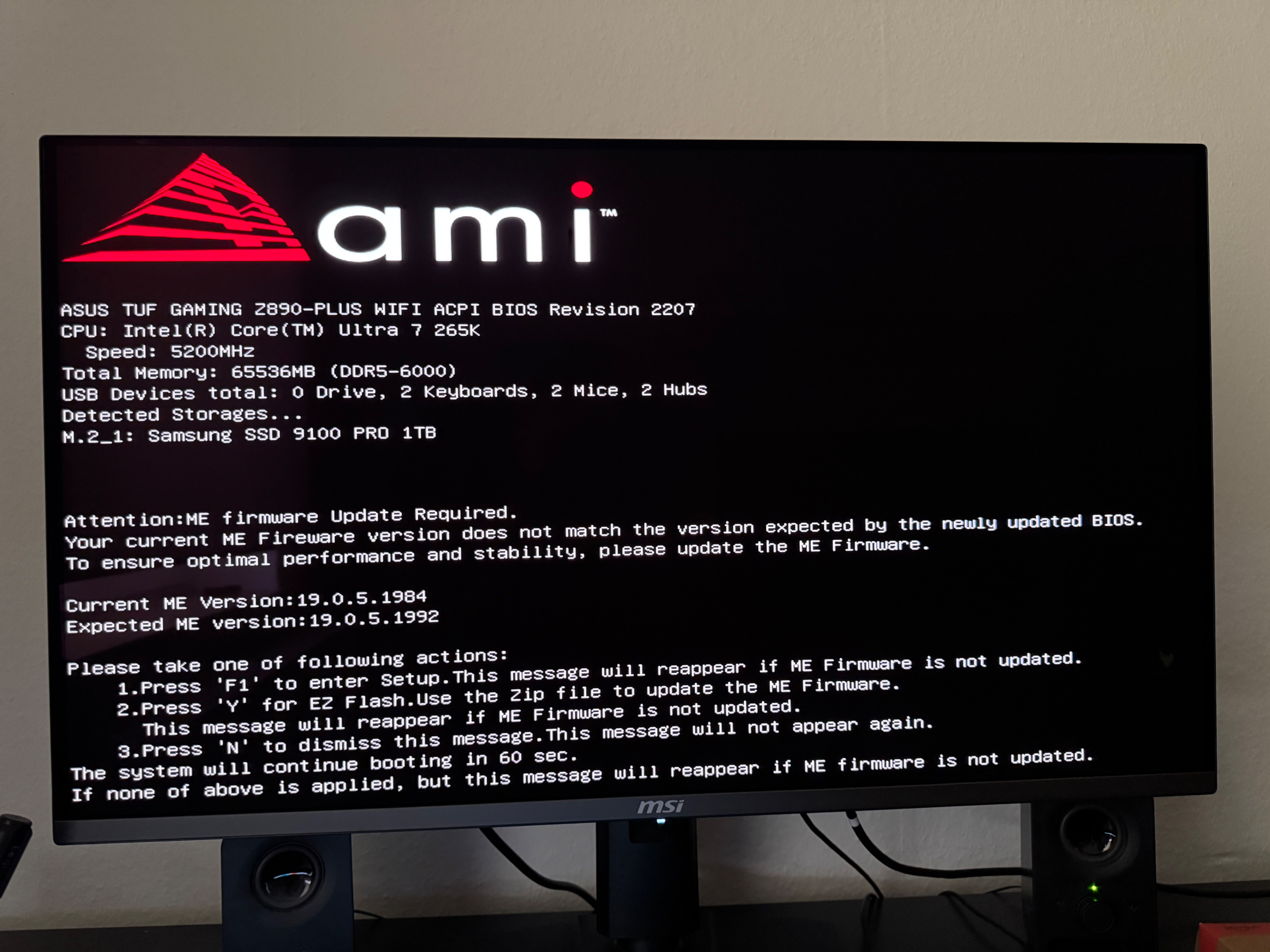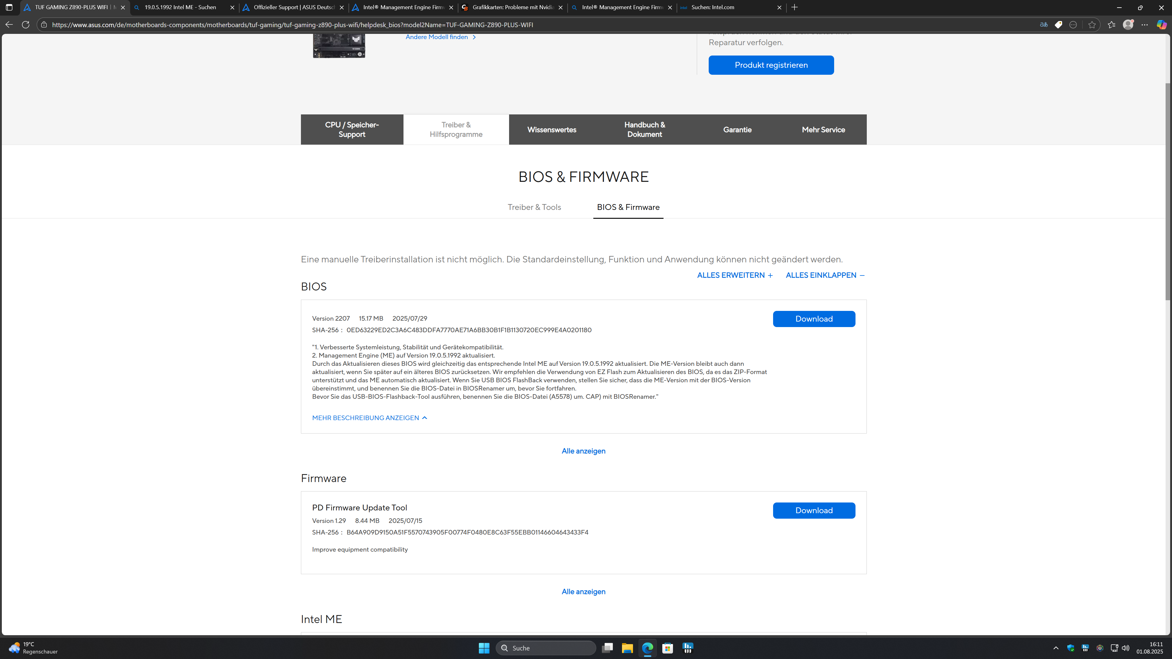 Dann kam die Meldung das meine Intel ME Firmware für das Board nicht aktuell ist. Aber auf der Asus Seite ist noch die alte ME Firmware drin statt die neue.