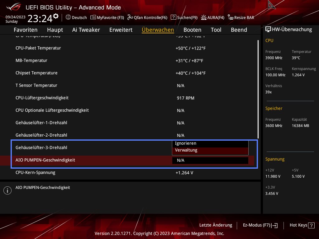 Schätze du musst hier CPU-Lüfter auf "Ignore" setzen, und den AIO auf "Manage" (oder ähnliches).
