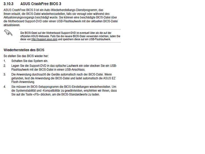 Crash-Free-Bios von ASUS-DVD funktioniert genauso wenig wie .ROM-Datei vom USB-Stick. :-(